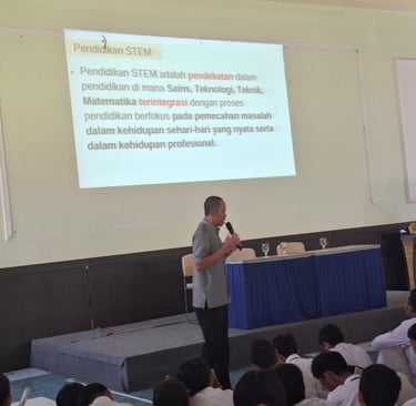 Senin, 2 Februari 2026 - Admin berkesempatan untuk berbagi informasi terkait Praktik baik STEM Engineering Class model EDP di SMP Negeri 13 Bandung. Kegiatan diikuti oleh peserta didik kelas 8 yang akan melaksanakan kegiatan Ko-Kurikuler di sekolah. Berbicara di depan peserta didik sebanyak 300 orang bukan perkara yang mudah. Admin perlu mempersiapkan materi yang disampaikan tidak lebih satu jam namun harus bisa menyentuh kepada informasi yang betul-betul bisa diaplikasikan pada kegiatan Ko-Kurikuler dengan tema Pengelolaan Sampah di Sekolah.