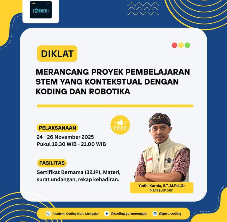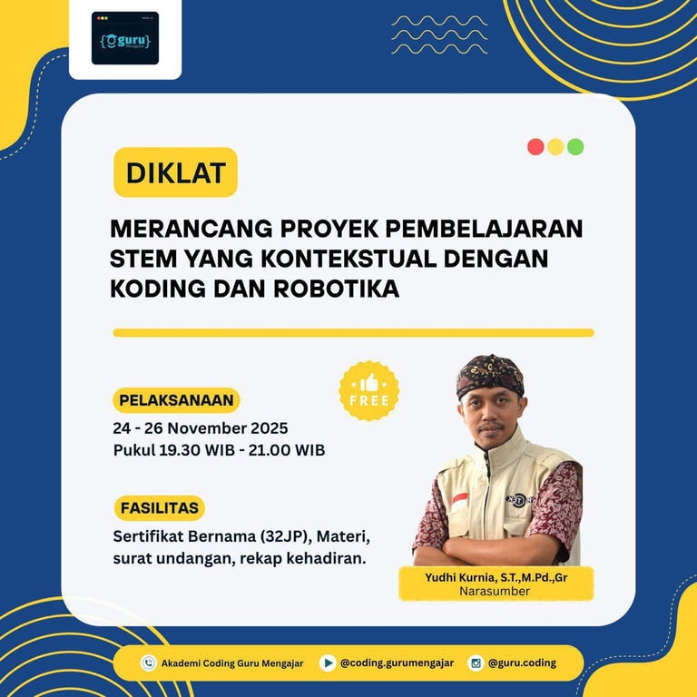 π GRATIS ! Diklat Merancang Proyek Pembelajaran STEM yang Kontekstual dengan Koding dan Robotika
